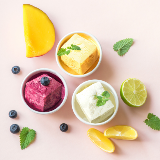 ジェラートとはイタリアン・アイスクリームのことで、一般的なアイスクリームに比べて、乳脂肪分が低くいのが特徴です。 当店では厳選した旬の果物のおいしさをそのままジェラートに仕上げました。風味が濃厚でありながら、甘さ控えめでヘルシーなキューブジェラートをご堪能ください。 さらにジェラートの製法を活かした、アイスキャンディ・アイスサンドも販売しております。
